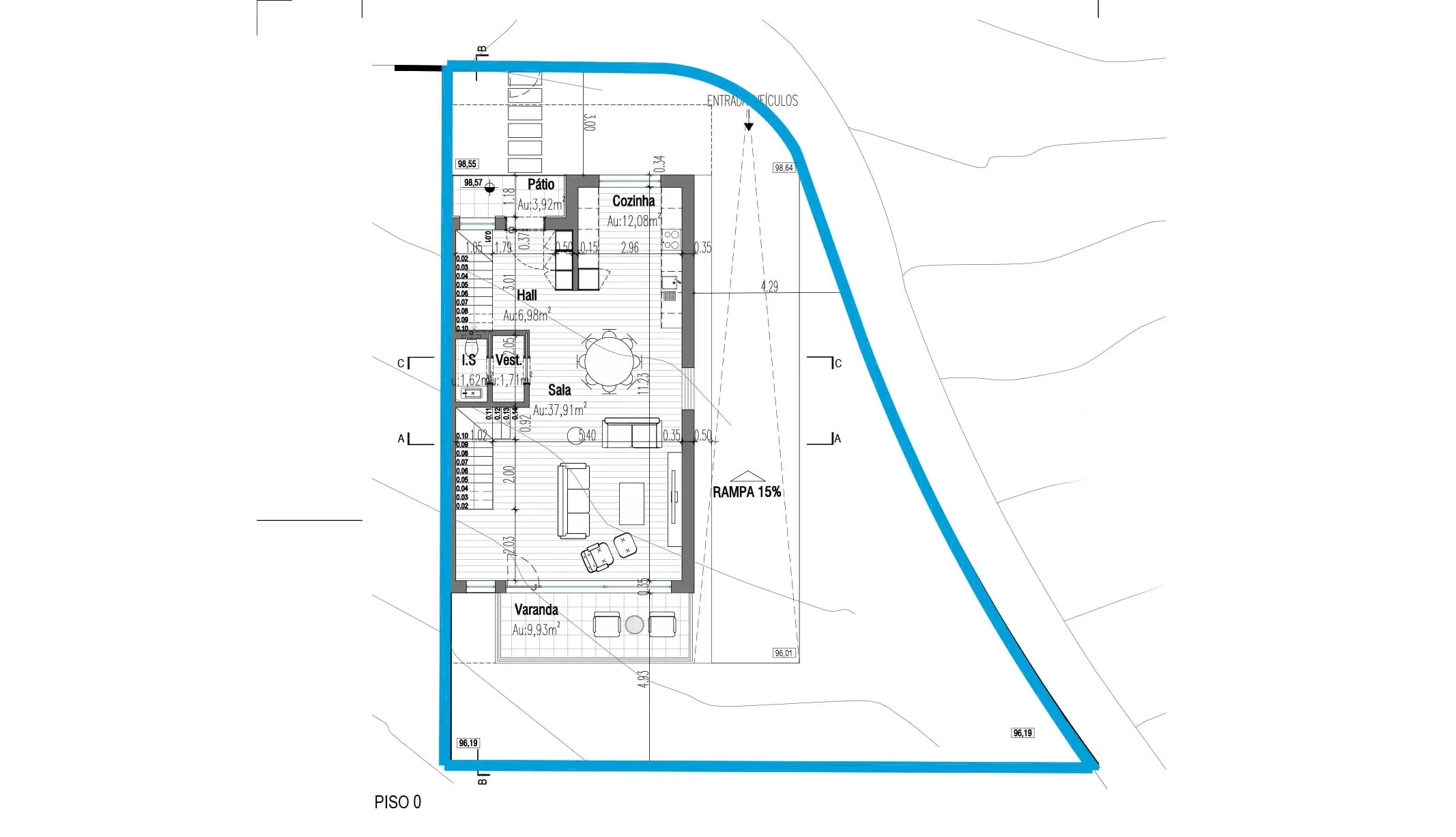 Piso 0: Hall (Entrada), Cozinha Equipada, Sala de Estar e Sala de Jantar (em open space com a cozinha), 1 WC completo, 1 Varanda ampla.