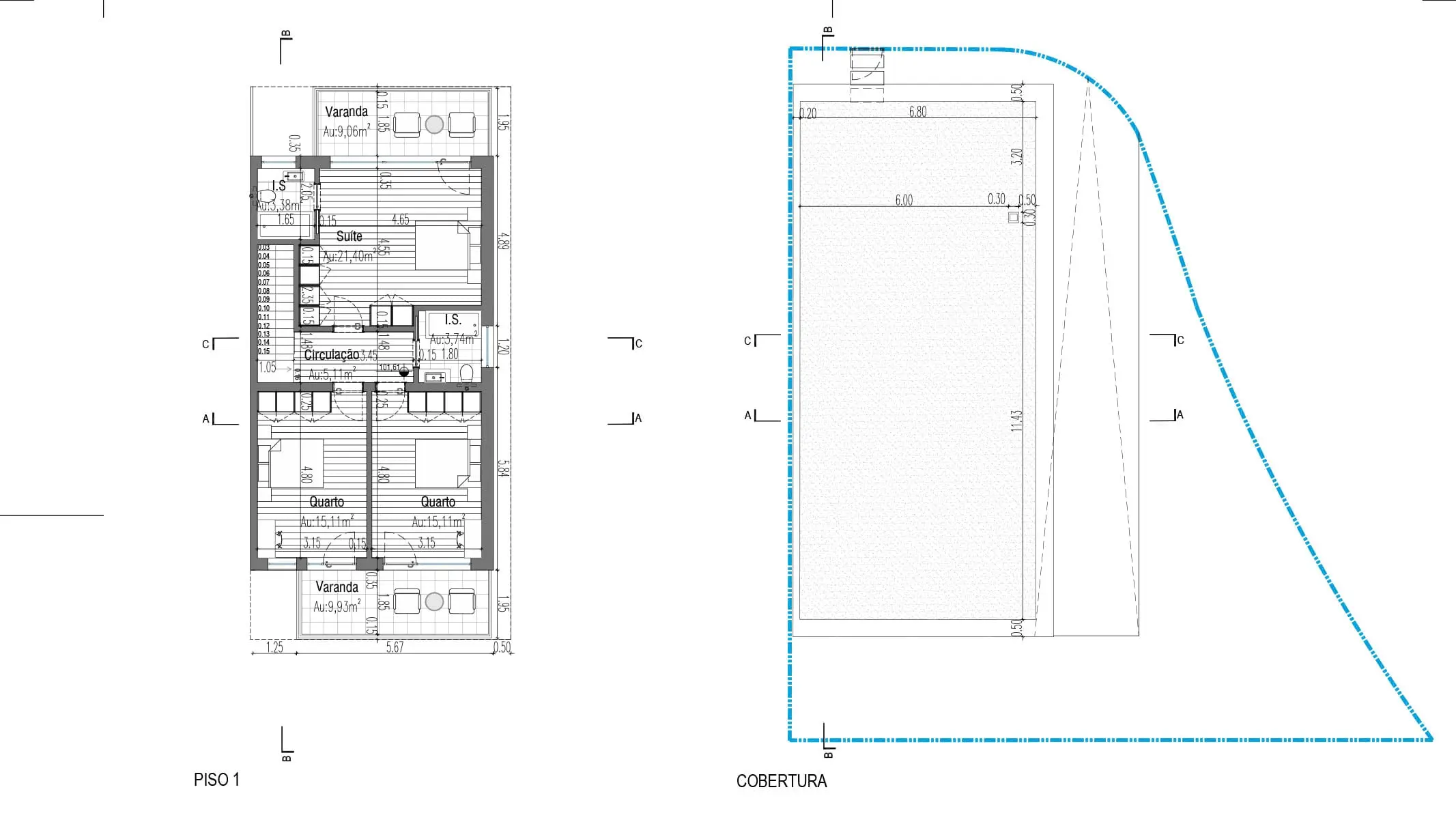 Piso 1: 3 Quartos, sendo um deles em suíte e com varanda privativa | 2 Quartos com varanda partilhada + 1 WC completo